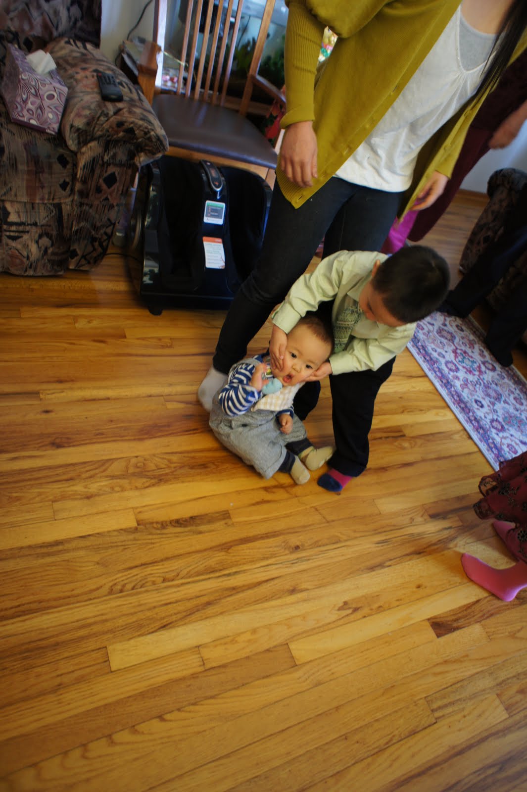 今日は、ジェフの親戚一同に、赤ちゃんのお披露目をしました☆中国では、生後一ヶ月目にお披露目パーティーをするのらしいのですが、1ヶ月の頃は日本にいたので、10ヶ月になってしまったけれど初のお披露目です。 まずは家族だけで、お家でご先祖様を拝みました。食べ物とお酒、紙でできたお札などをお供えして、紙のお金は後で燃やしました。