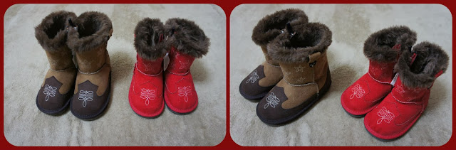 二人とも大興奮で袋を開けると〜。。。こ〜んな可愛いブーツでした!お兄ちゃん「かわい〜い、かわい〜い♡」と何度も言いながら履いてました♪ホントに可愛い♡早くお外で履きたいな〜。